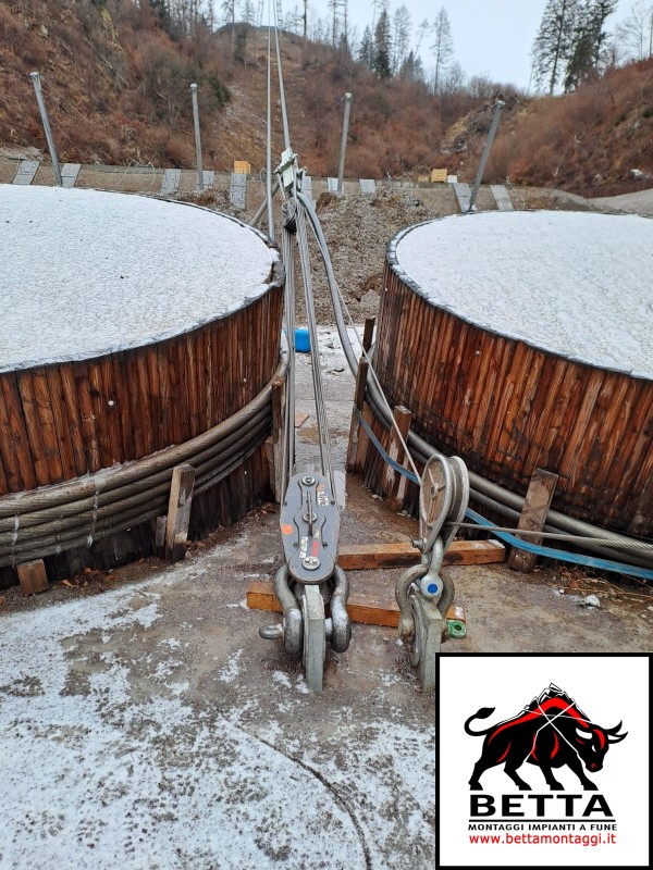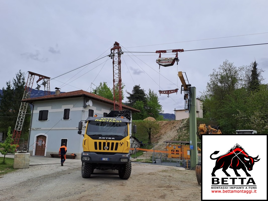Betta Montaggi è specializzata nel montaggio, revisioni speciali e generali, sostituzione funi, accorciamento funi e manutezione di impianti a fune per trasporto pubblico (es funivie bidonvie, seggiovie ecc) e trasporto di materiali (teleferica).